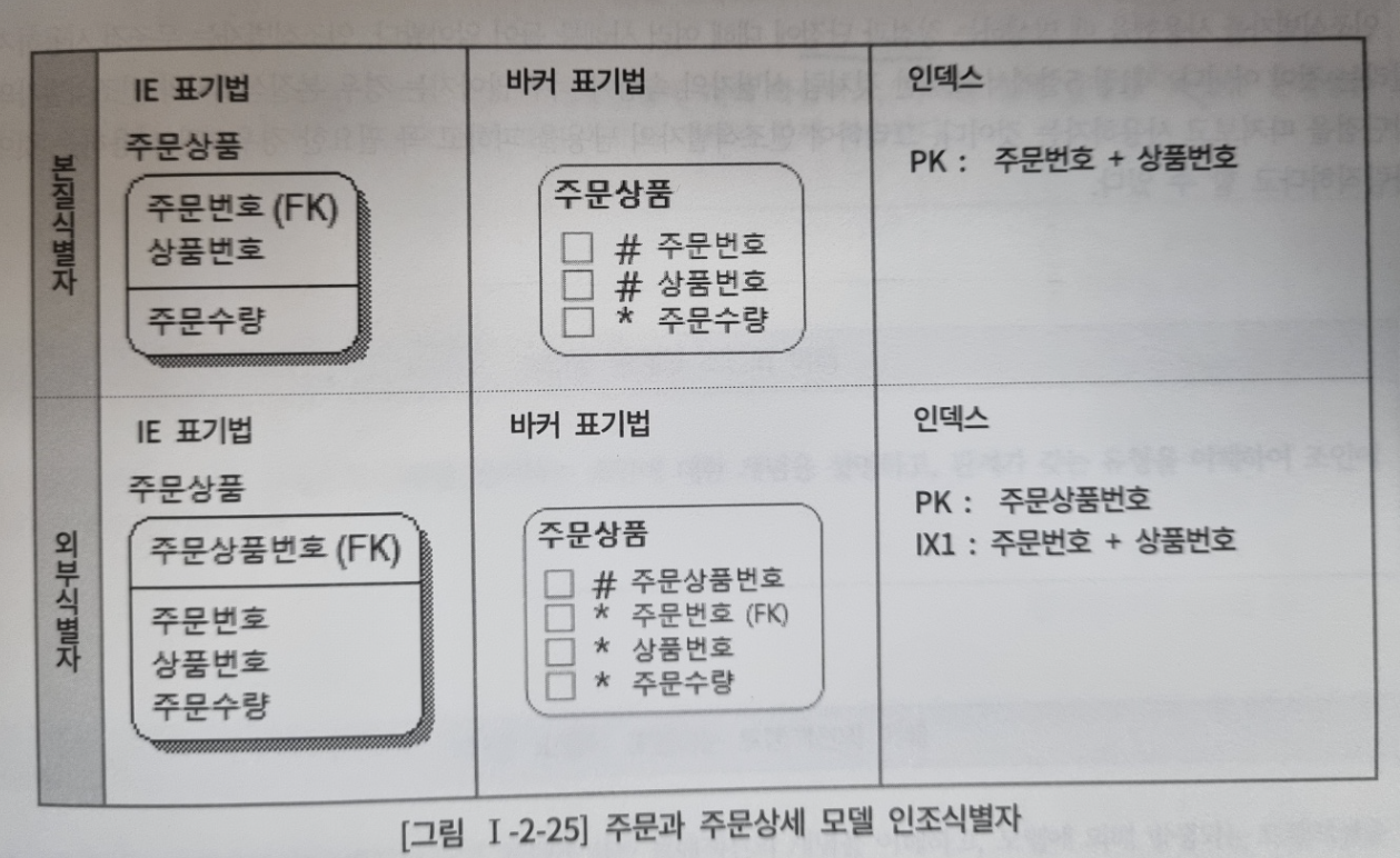 주문번호 + 주문 순번을 식별자(본질 식별자)로 사용할 경우 DBMS에서 오류 원천적으로 차단해줌.