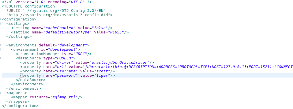 즉, mybatis-config.xml은 getConnection()메소드의 데이터베이스 연결정보를 대체하는 것이다.