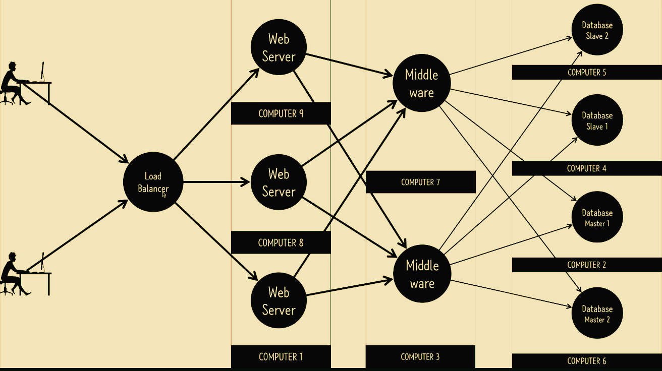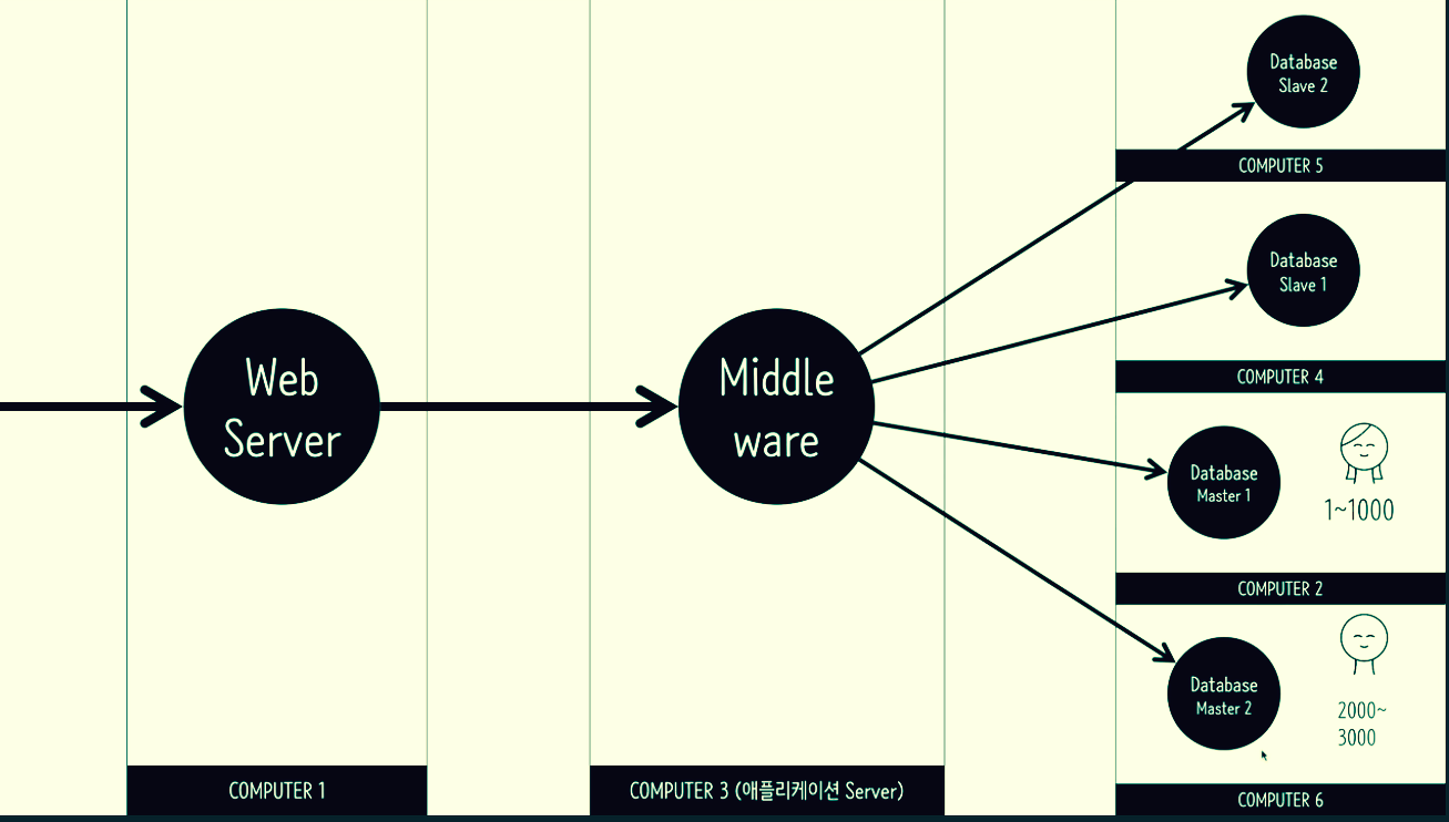 여러 대의 컴퓨터로 요청처리하는 것 (scale up을 아무리 해도 규모가 커지면 한계에 도달한다) 그러나 처음에는 서비스할 때 scale up으로 시작해야 한다.