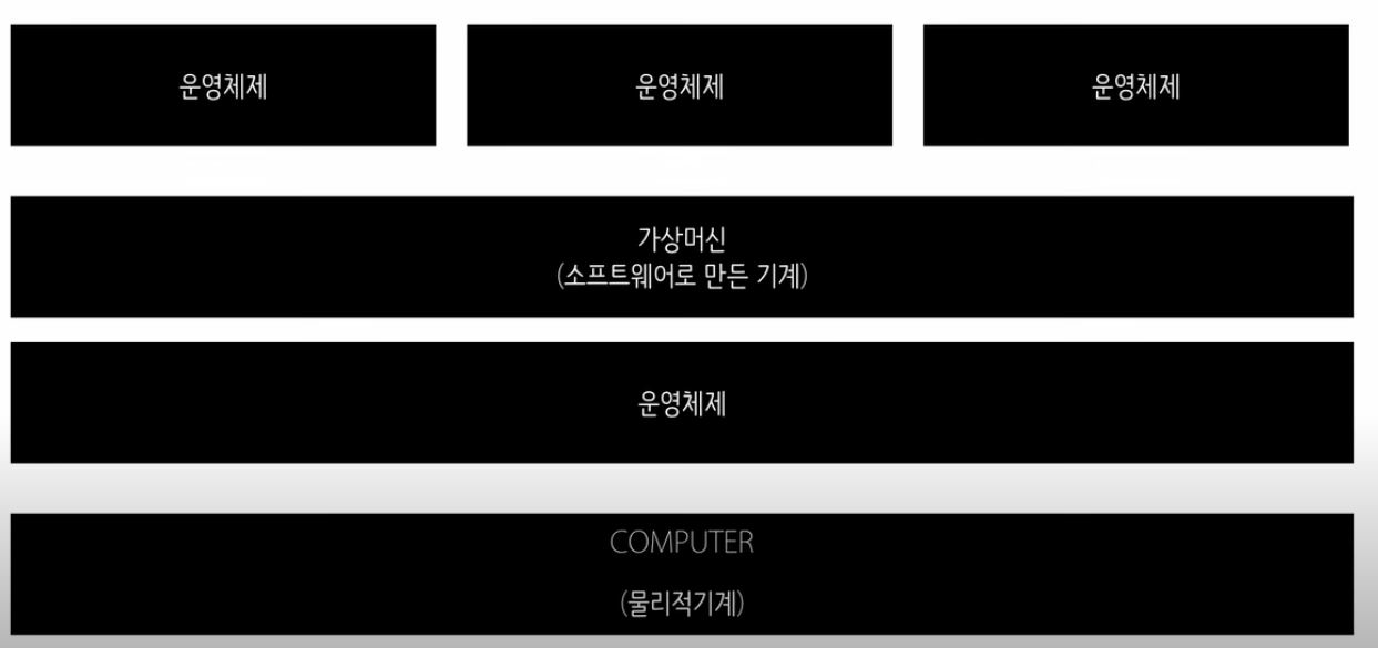 가상머신이란 소프트웨어로 만든 기계로 운영체제 위에 까는 것임.