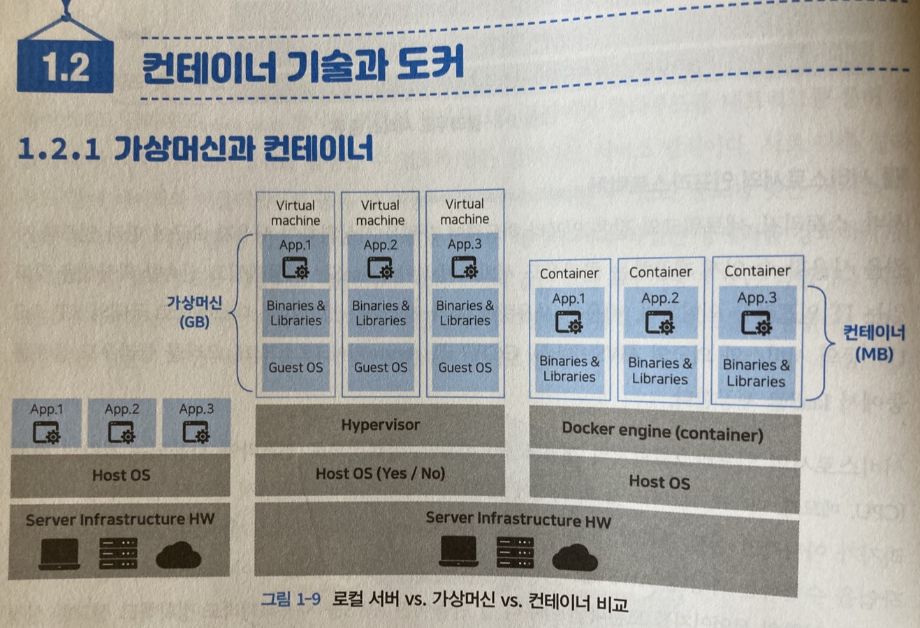컨테이너를 이용한 가상화는 리눅스 기반의 물리적 공간 격리가 아닌 프로세스 격리를 통해 경량의 이미지를 실행하고 서비스할 수 있는 컨테이너 기술이다. 물리적 요소에 대한 가상화인 가상머신과 다르게 컨테이너 가상화는 프로세스 가상화이다. 컨테이너 기술의 장점은 하이퍼바이저와 게스트 OS가 없어 가볍다. 따라서 이미지 복제, 이관, 배포가 쉬우며 가상머신보다 경량이므로 더 많은 애플리케이션을 실행할 수 있다. 또한, 게스트 OS를 부팅하지 않기 때문에 애플리케이션 시작시간이 빠르다.