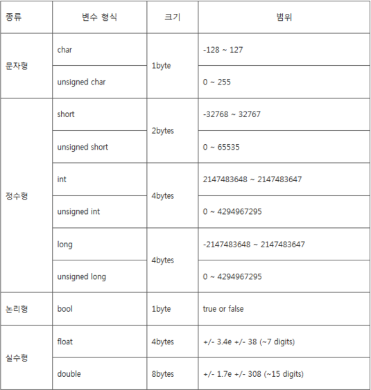 unsigned란 부호가 없다는 뜻으로 -x ~ +x의 범위 대신 0 ~ +2x 범위를 의미한다.