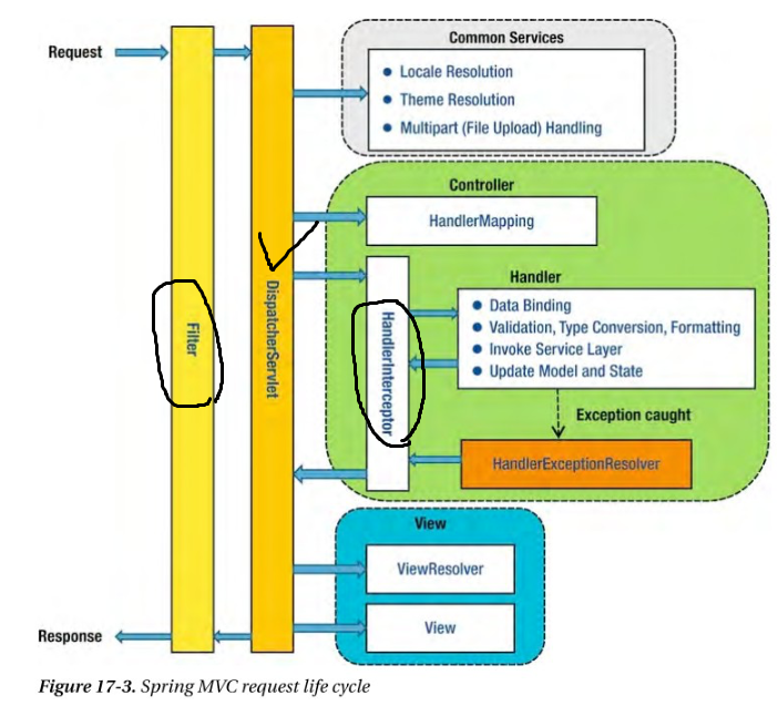 아래 그림에서와 같이 Filter는 DispatcherSevlet 앞에서 먼저 동작한다.
