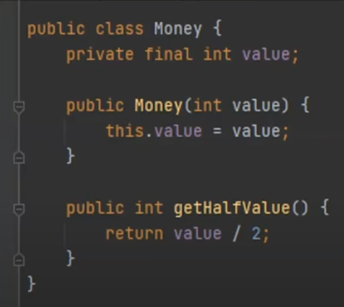- 특정한 비즈니스 로직을 가질 수 있음 (밑에 getHalfValue())